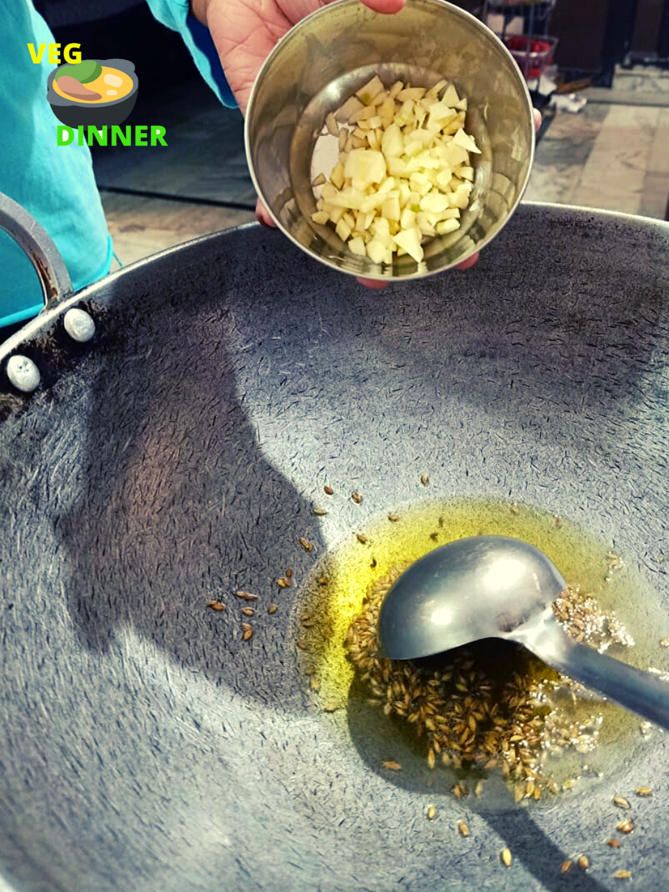 4.Put a pan on low heat, then add oil, once the oil gets heated add some cumin seeds.